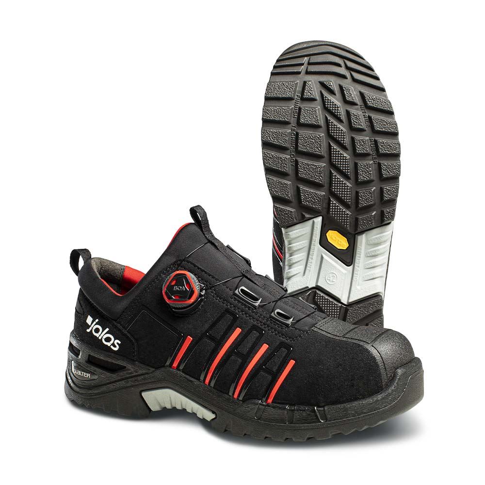 Denna låga sko har skyddsfunktioner för de flesta arbeten, t ex spiktrampskydd i PTC-textil, tåhätta i aluminium och en Vibram Nitrile yttersula i gummi för bästa grepp. Mellansulan och innersulan i flera lager och den strumpliknande konstruktionen ger en mycket bra komfort. PORON® XRD™ dämpar stötar och förebygger skador på fötter och rygg. Ovandelen är vattenavvisande, perfekt för den som arbetar i fuktiga miljöer. BOA® Fit System gör det smidigt ta på och av skon.